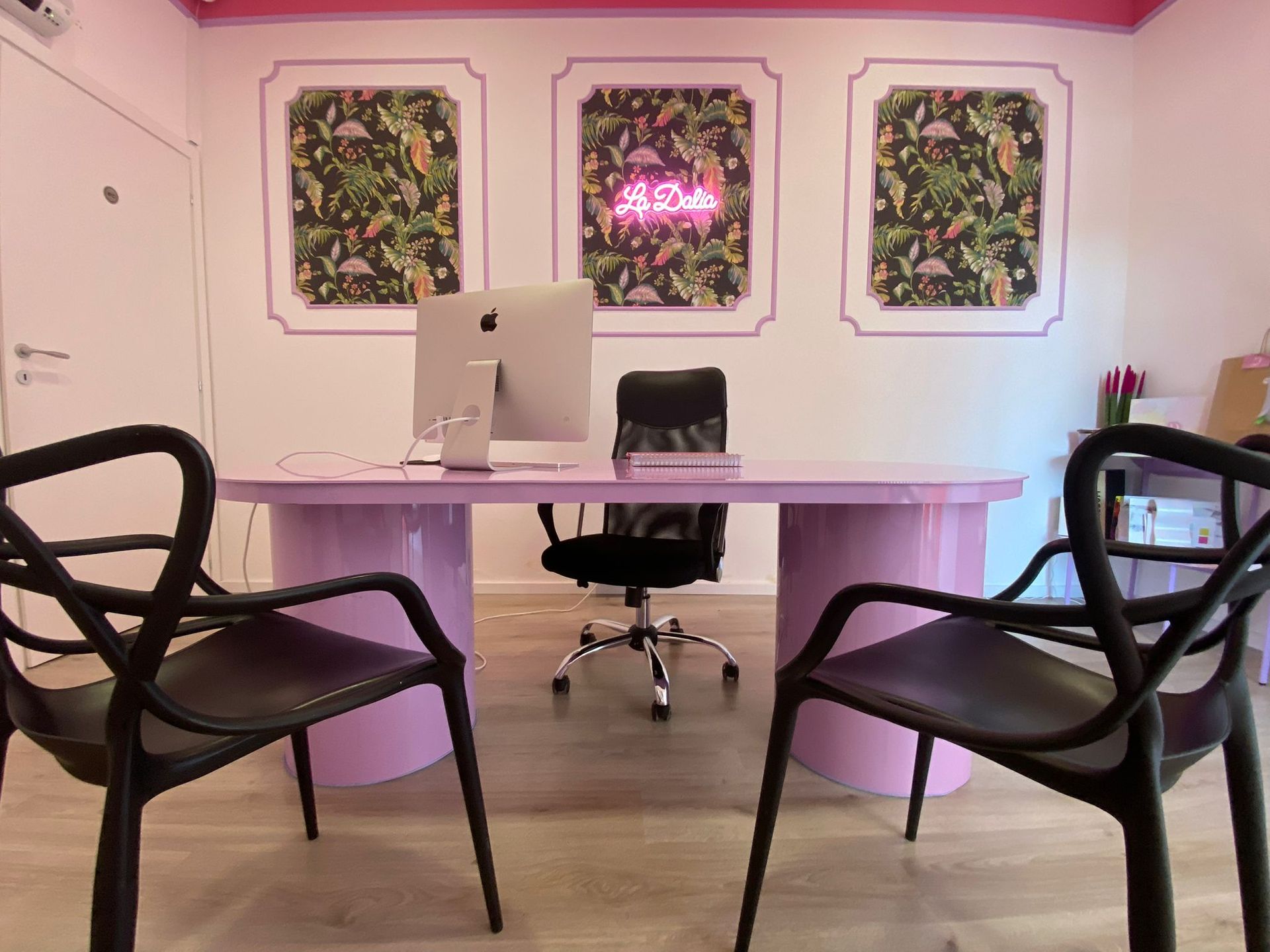 Nel retro dello studio c’è il mio ufficio, progettato con colori e dettagli che accolgono chi entra in modo semplice e naturale. Mi piace che le persone si sentano a proprio agio fin dal primo incontro.